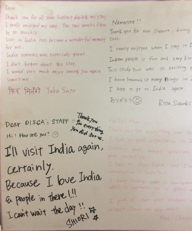 I was afraid of the difficulty and possible troubles during our study tour for more than 10 days in transportation, sanitation, accommodations and communication withlocal people. Therefore, I e-mailed to my friend, Prof. Kaoru Hayashi of Bunkyo University, who has been conducting study tours to India with his seminar students since 2012 and asked him about the “secret” know-how of his continued successful study tours to India. Prof. Hayashi, then, kindly recommended OISCA North India to me for detailed consultation. Thanks to the excellent study tour program which was well prepared by OISCA North India, all my students expressed their full satisfaction with the study tour program both in quality and cost after having visited local NGOs, a high school, Indian company’s factories and JICA-financed environment projects, etc. in addition to the famous world heritages in Delhi, Agra and Jaipur. Honestly speaking, I am sure that without OISCA’s excellent assistance, we could not accomplish our study tour to India in such a successful and safety manner.