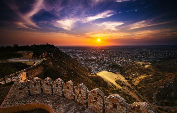 Nahargarh Fort stands on the edge of the Aravalli Hills, overlooking the city of Jaipur in the Indian state of Rajasthan. Along with Amer Fort and Jaigarh Fort, Nahargarh once formed a strong defense ring for the city. The fort was originally named Sudarshangarh but it became known as Nahargarh, which means 'abode of tigers'.
